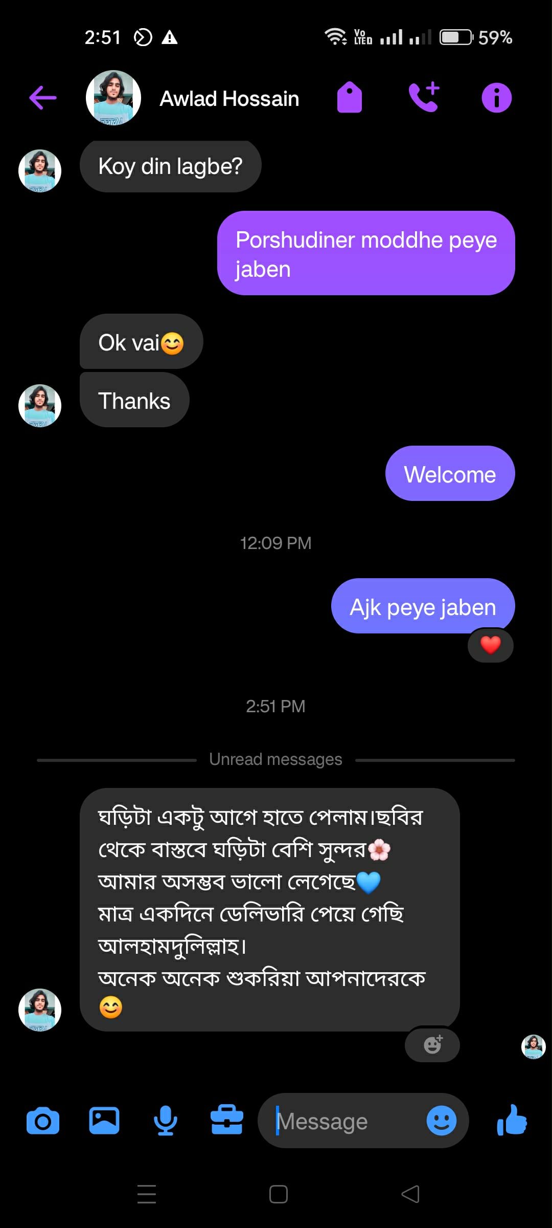 নোট ২ : ঘড়ি টি ওয়াটার রেসিস্টেন্ট অর্থ্যাৎ পানিজনিত সব কাজ ই করতে পারবেন ঘড়ি হাতে দিয়ে,, বৃষ্টির পানি ওযুর পানিতে ঘড়ির কিচ্ছু হবেনা,, ঘড়ি থাকবে পুরো সচল