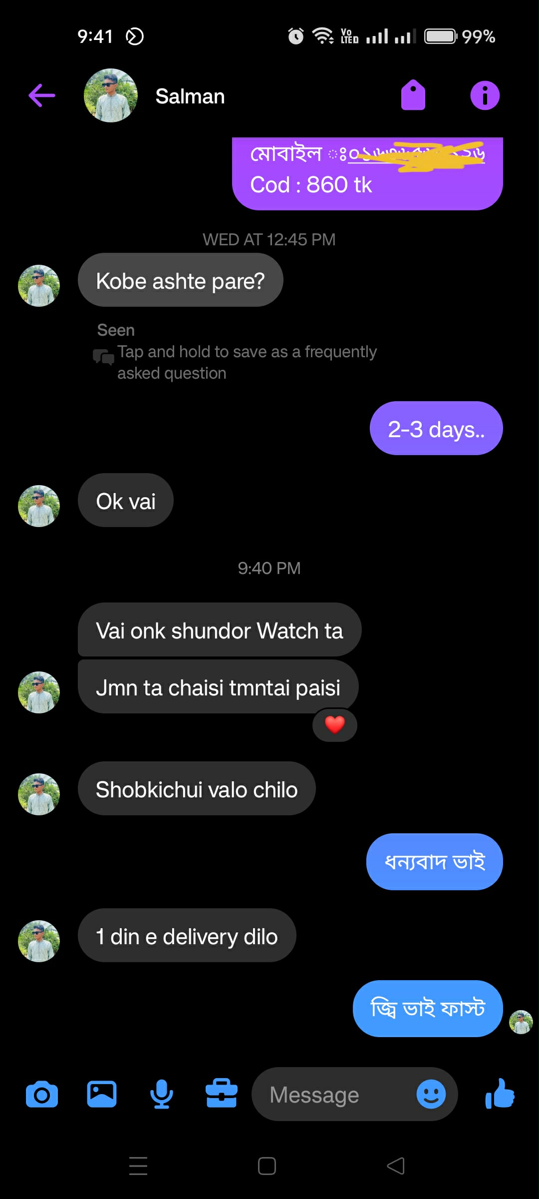 নোট ২ : ঘড়ি টি ওয়াটার রেসিস্টেন্ট অর্থ্যাৎ পানিজনিত সব কাজ ই করতে পারবেন ঘড়ি হাতে দিয়ে,, বৃষ্টির পানি ওযুর পানিতে ঘড়ির কিচ্ছু হবেনা,, ঘড়ি থাকবে পুরো সচল